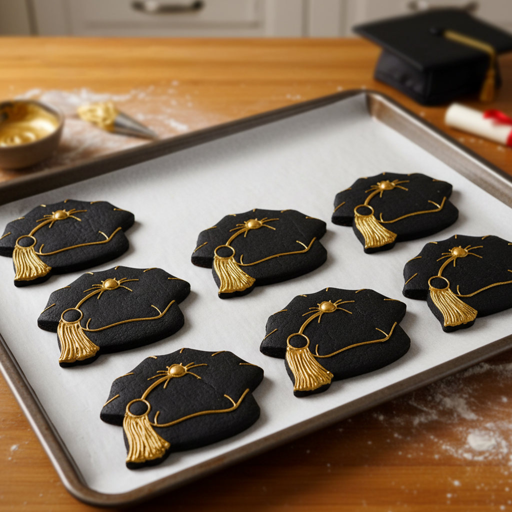 graduate cap cookie cutter pressed on fondant